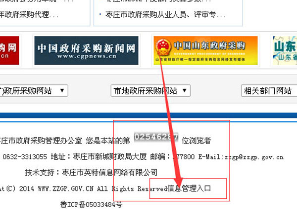 拉到網(wǎng)站的底部,找到信息管理入口點擊進入。或直接打開:http://www.zzgp.gov.cn/zztt/這個地址就可以進入后臺